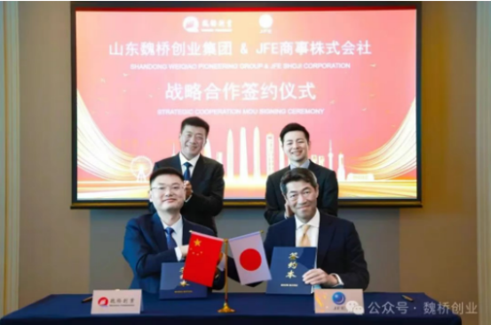 On June 19, during the 6th Qingdao Multinational Corporation Leaders Summit, Shandong Weiqiao Pioneering Group signed a strategic cooperation agreement with Japan’s JFE Shoji Corporation in Qingdao. Prior to the signing ceremony, Mr. Zhang Bo, Chairman of Shandong Weiqiao Pioneering Group, met with Mr. Yasushi Mizunami, Managing Director of JFE Shoji Corporation. The two sides held in-depth discussions on the iron ore business and broader cooperation.