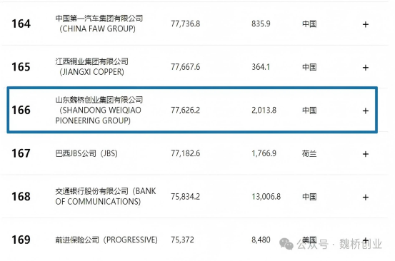 On July 29, 2025 (Beijing time), Fortune China, in sync with the global release, unveiled the latest Fortune Global 500 rankings. Shandong Weiqiao Pioneering Group Co., Ltd. has made the list for the 14th consecutive year, ranking 166th in 2025 — a 9-place rise from last year. This achievement highlights the Group’s strong competitiveness and growing global influence.