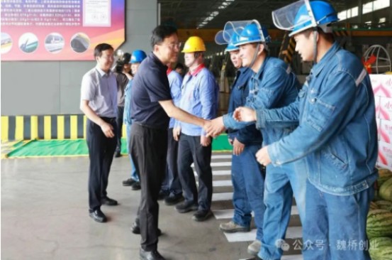 On August 5, Zhang Qian, Secretary of the Zouping Municipal Party Committee, and Sun Dongping, Deputy Secretary of the Municipal Party Committee and Mayor, visited the frontlines of production at Weiqiao Pioneering Group to carry out the “Summer Cooling”. They were accompanied by Zhang Hongxia, Party Secretary and General Manager of the Group.